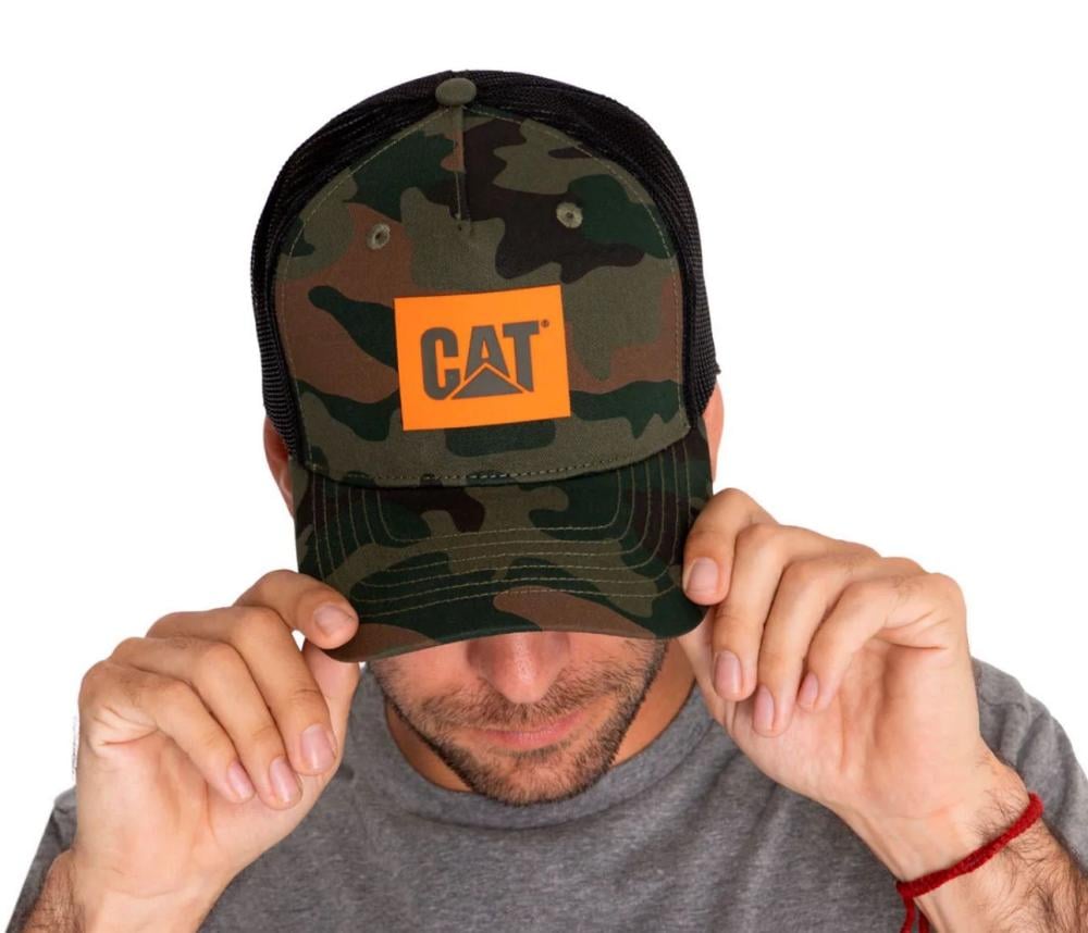 قبعة شبكية سوداء بخمسة ألواح بشعار كاتربيلر